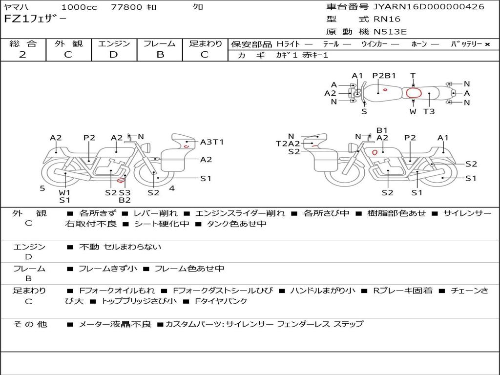 | Номер рамы / VIN | JYARN16D000000426 |