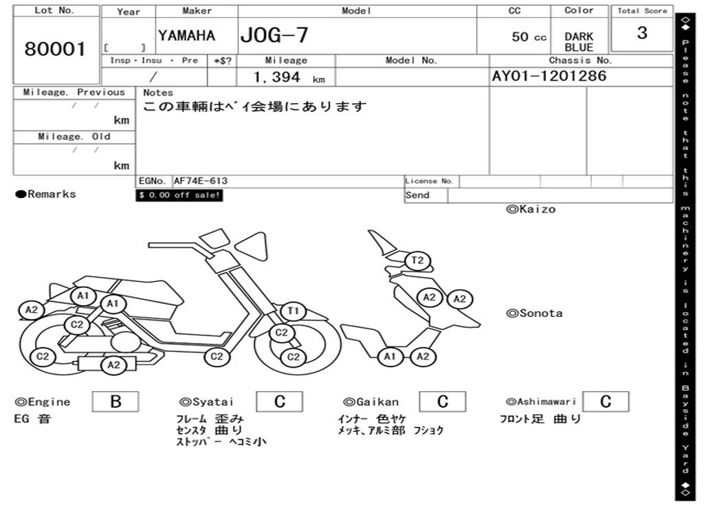 | Аукцион | ARAI BAYSIDE |