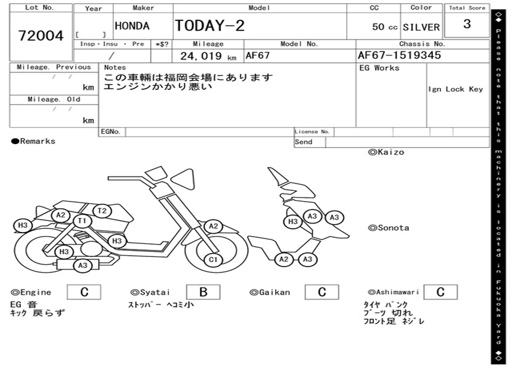 | Номер рамы / VIN | AF67-1519345 |
