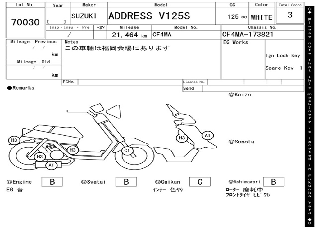 | Номер рамы / VIN | CF4MA-173821 |
