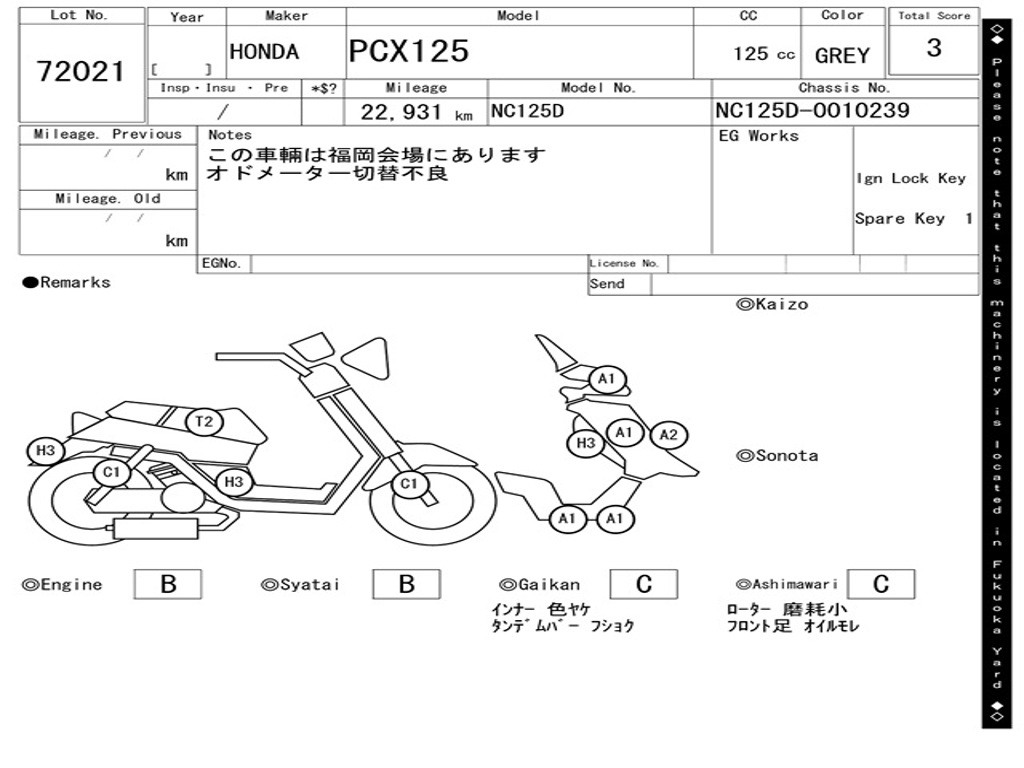 | Номер рамы / VIN | NC125D-0010239 |