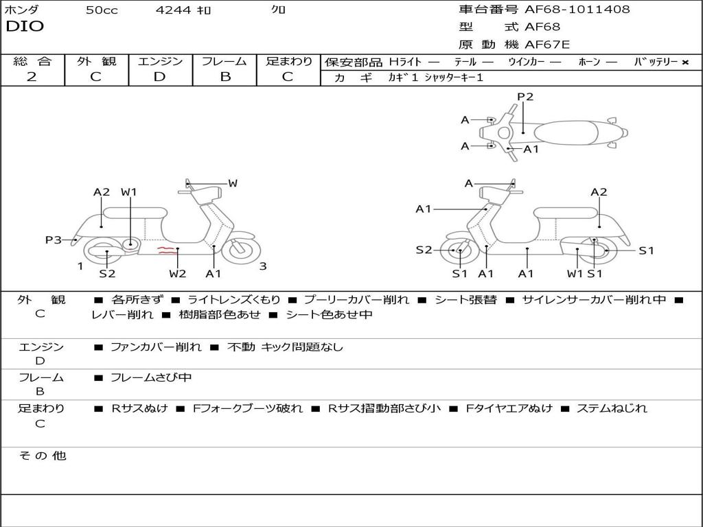 | Номер рамы / VIN | AF68-1011408 |