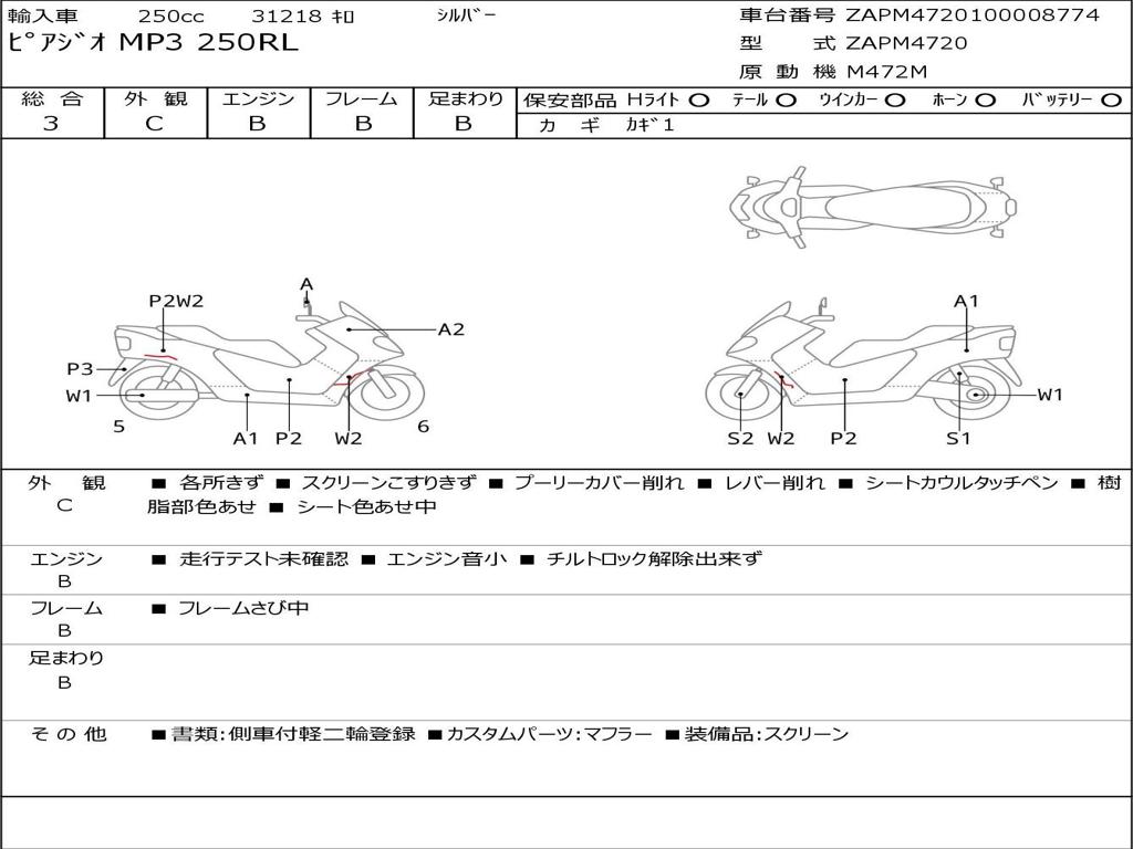 | Номер рамы / VIN | ZAPM4720100008774 |