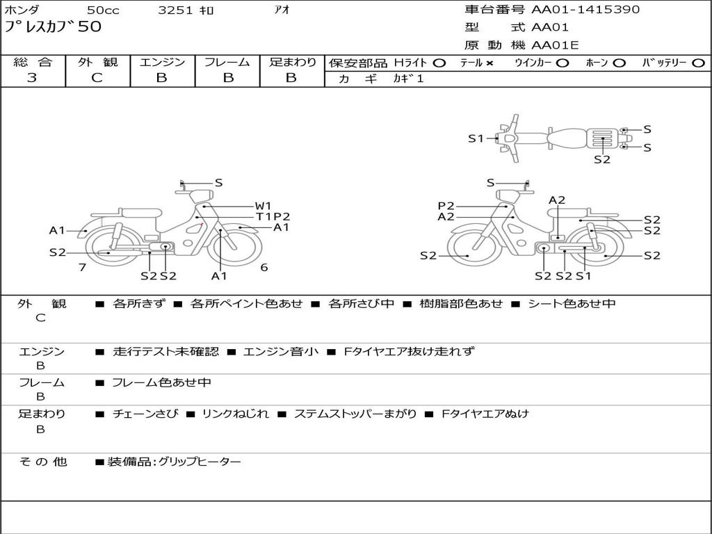 | Номер рамы / VIN | AA01-1415390 |