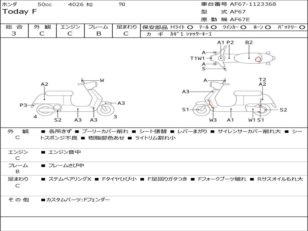 | Номер рамы / VIN | AF67-1123368 |