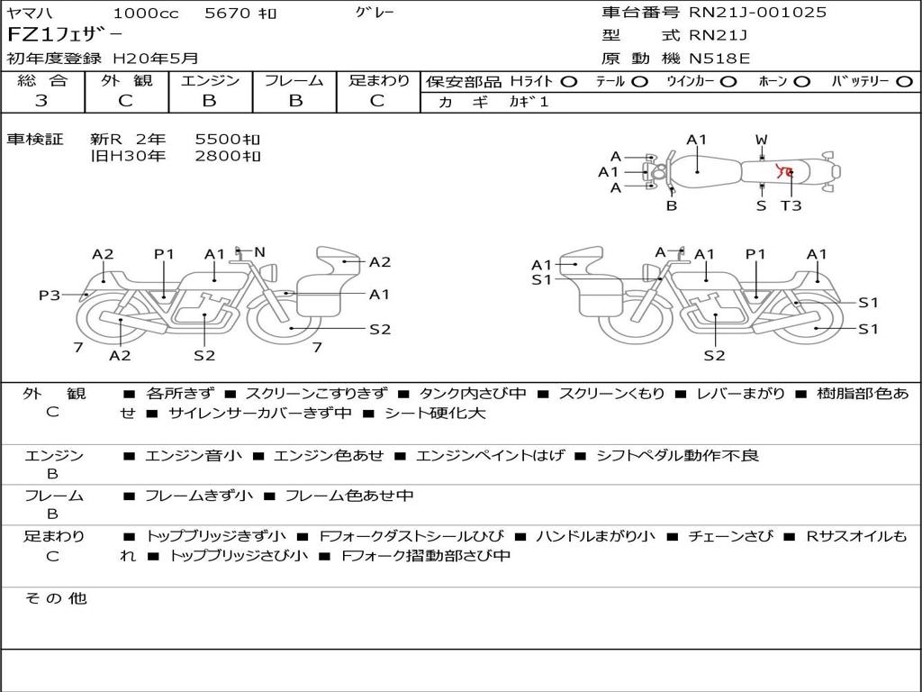 | Номер рамы / VIN | RN21J-001025 |