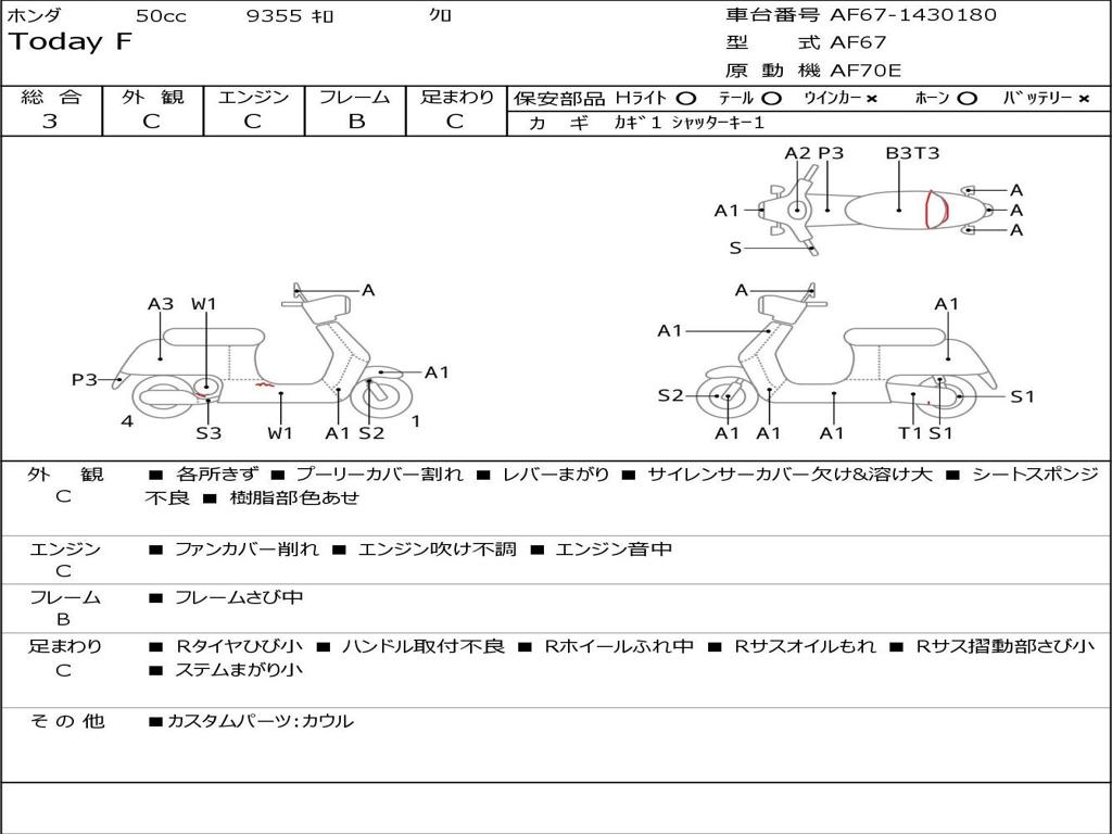 | Номер рамы / VIN | AF67-1430180 |