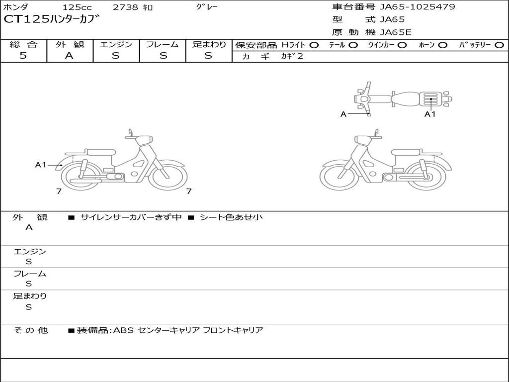 | Номер рамы / VIN | JA65-1025479 |