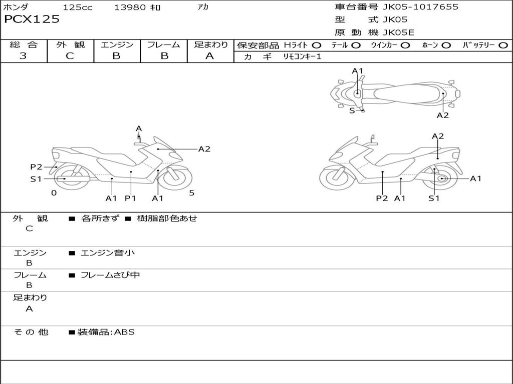 | Номер рамы / VIN | JK05-1017655 |