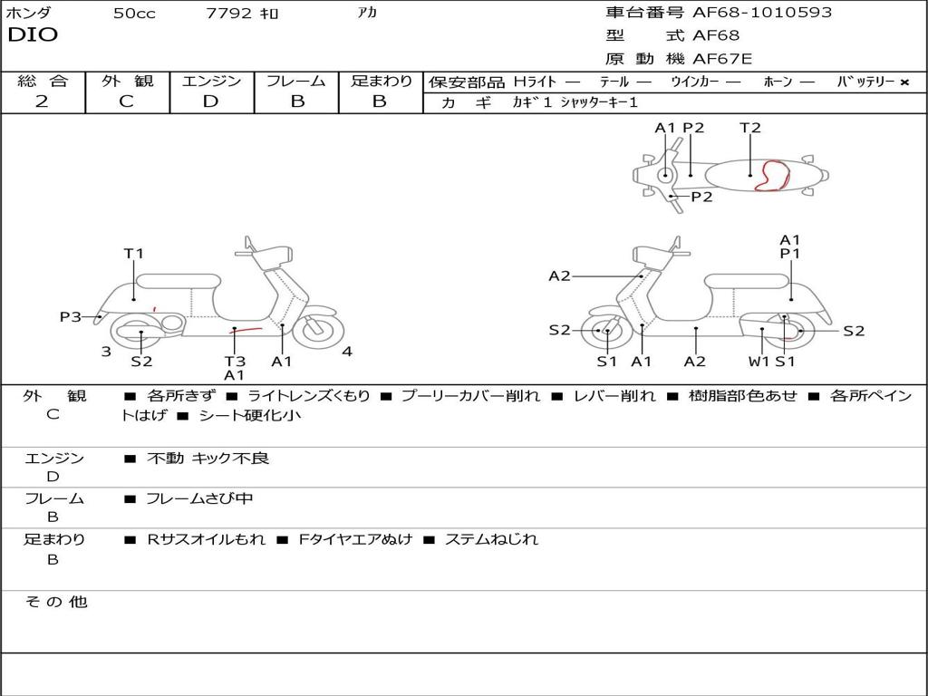 | Номер рамы / VIN | AF68-1010593 |
