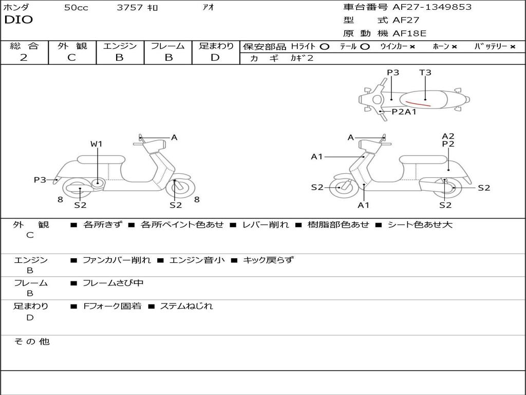 | Номер рамы / VIN | AF27-1349853 |