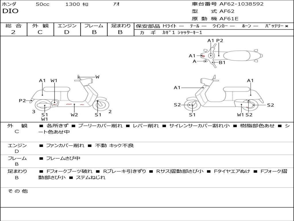 | Номер рамы / VIN | AF62-1038592 |