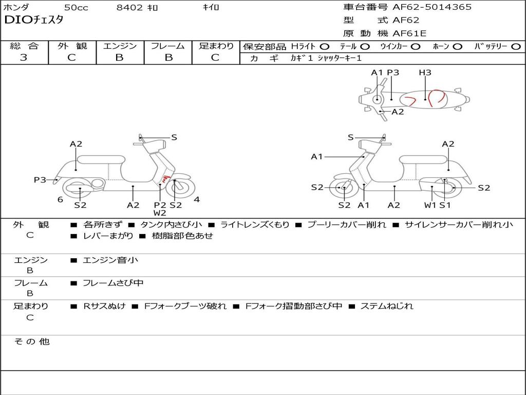 | Номер рамы / VIN | AF62-5014365 |