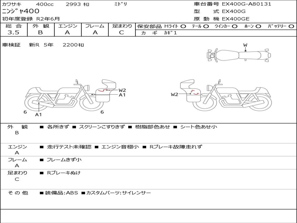 | Номер рамы / VIN | EX400G-A80131 |