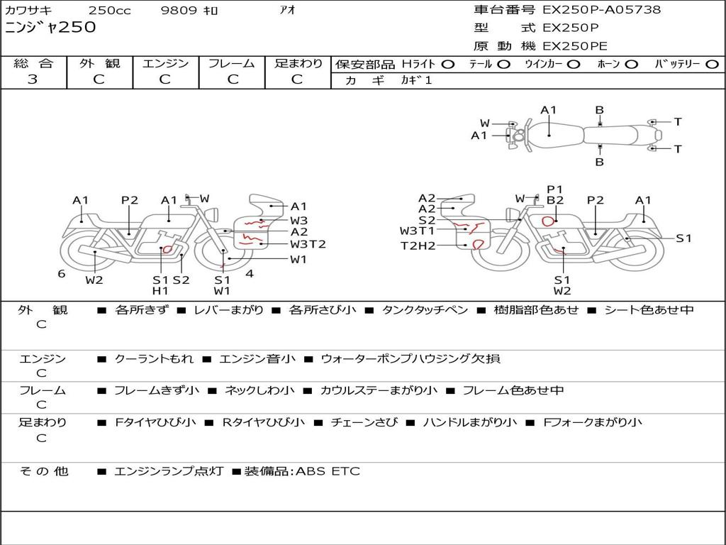 | Номер рамы / VIN | EX250P-A05738 |