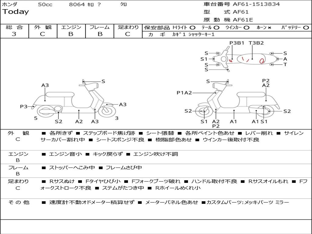 | Номер рамы / VIN | AF61-1513834 |