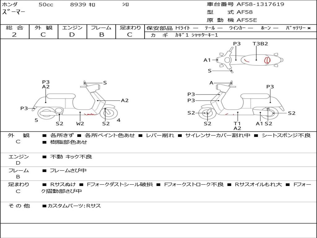 | Номер рамы / VIN | AF58-1317619 |