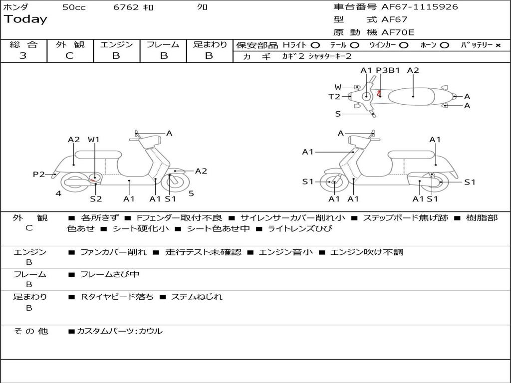 | Номер рамы / VIN | AF67-1115926 |