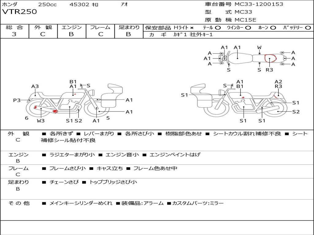 | Номер рамы / VIN | MC33-1200153 |