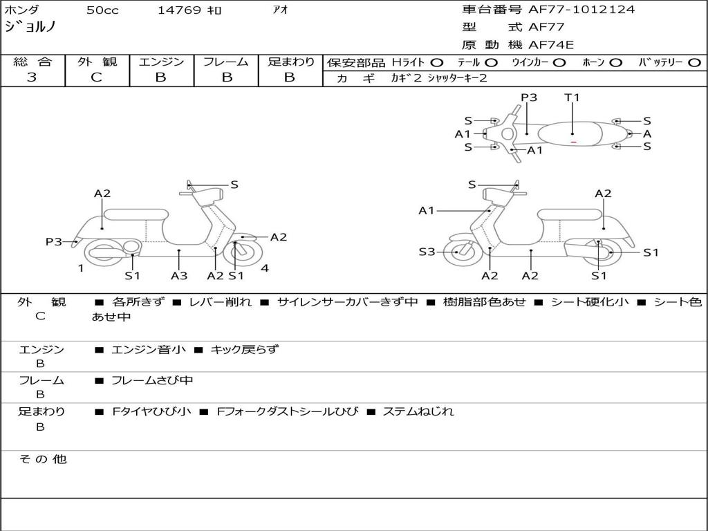 | Номер рамы / VIN | AF77-1012124 |