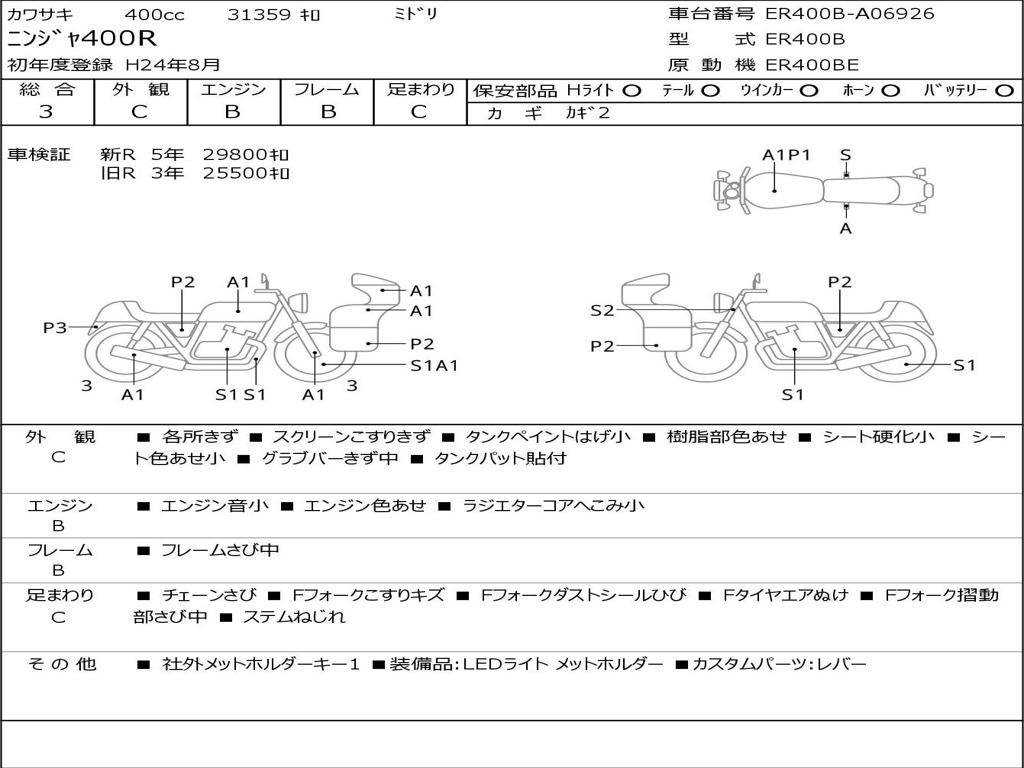 | Номер рамы / VIN | ER400B-A06926 |