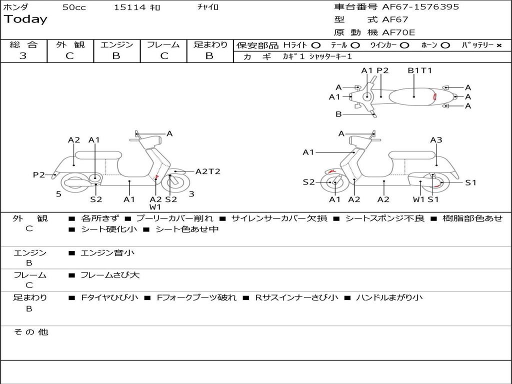 | Номер рамы / VIN | AF67-1576395 |
