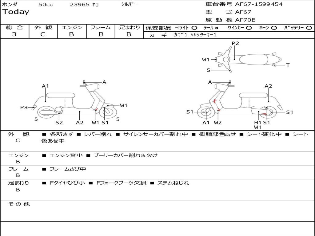 | Номер рамы / VIN | AF67-1599454 |