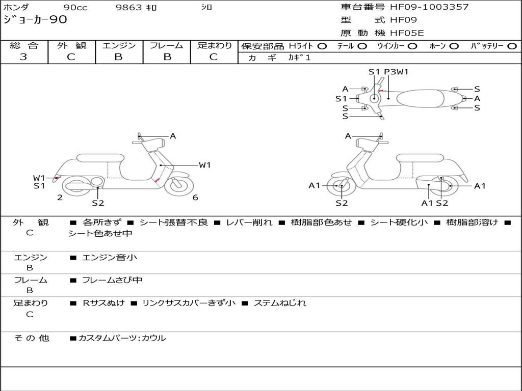 | Номер рамы / VIN | HF09-1003357 |