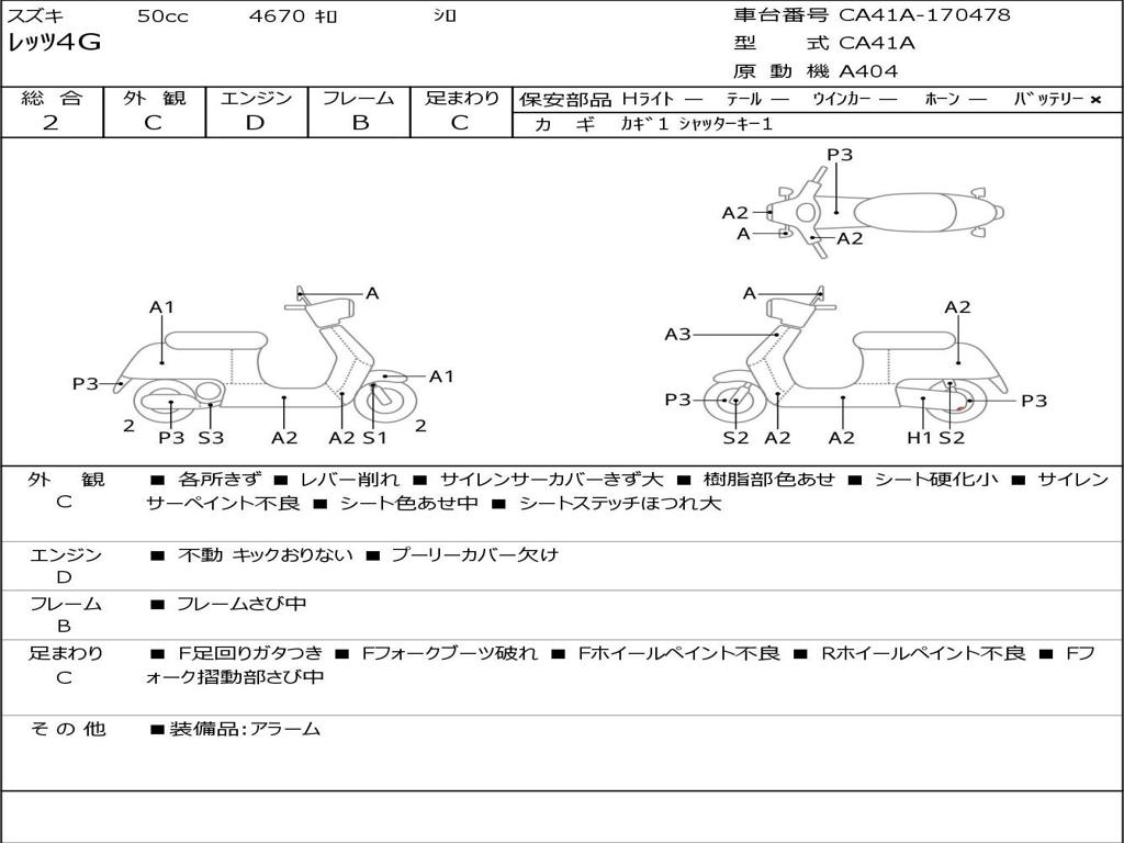 | Номер рамы / VIN | CA41A-170478 |