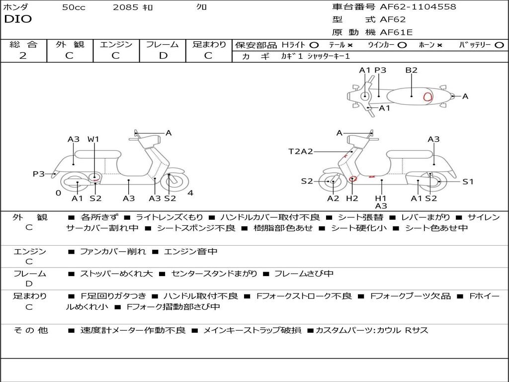 | Номер рамы / VIN | AF62-1104558 |