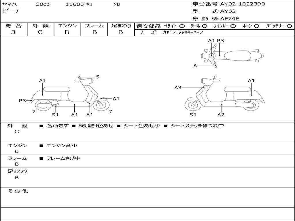 | Номер рамы / VIN | AY02-1022390 |