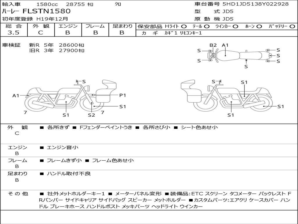 | Номер рамы / VIN | 5HD1JD5138Y022928 |