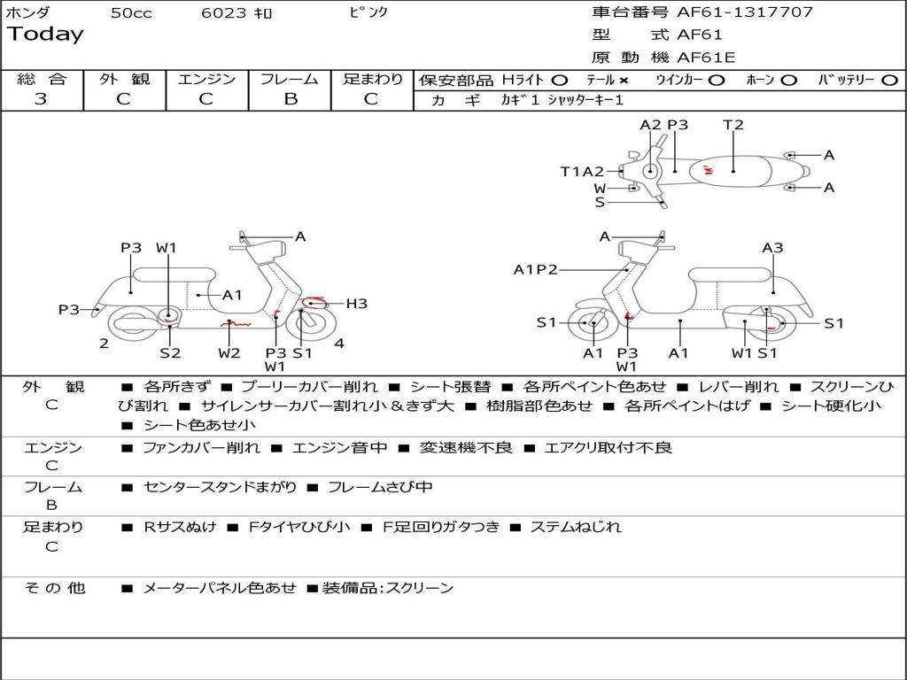 | Номер рамы / VIN | AF61-1317707 |