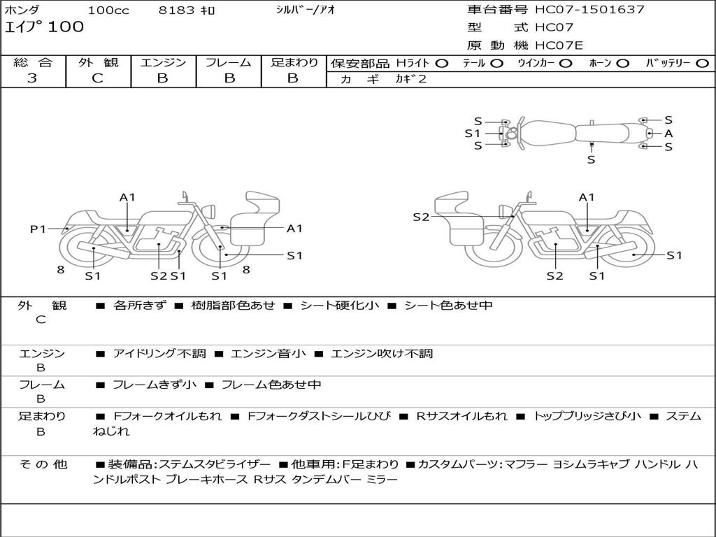 | Номер рамы / VIN | HC07-1501637 |