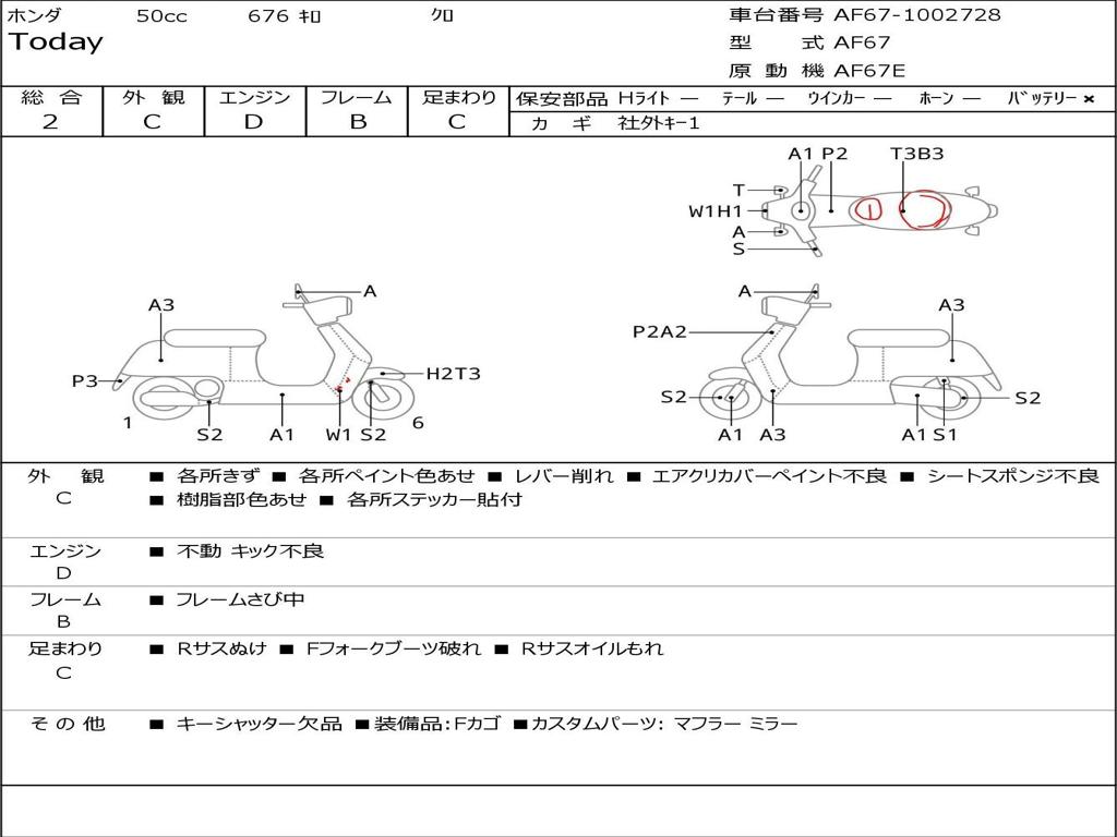 | Номер рамы / VIN | AF67-1002728 |