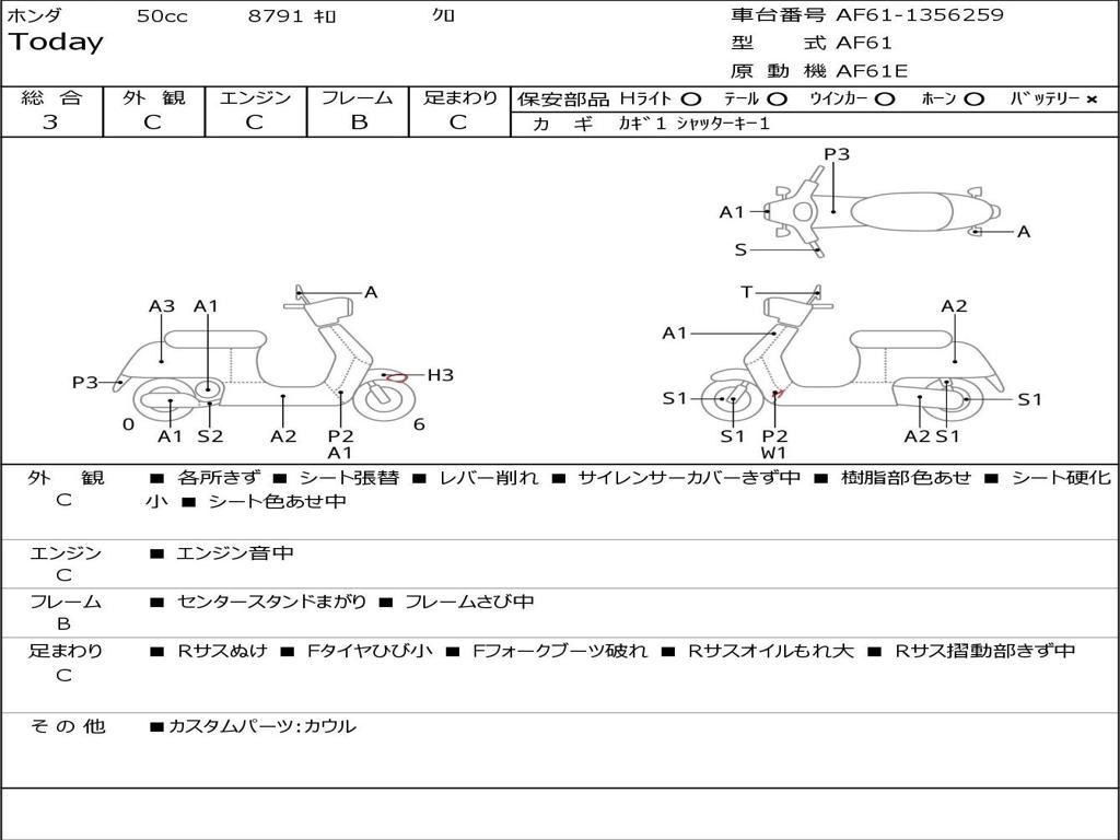 | Номер рамы / VIN | AF61-1356259 |