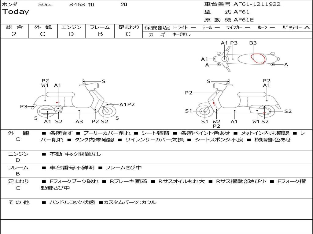 | Номер рамы / VIN | AF61-1211922 |