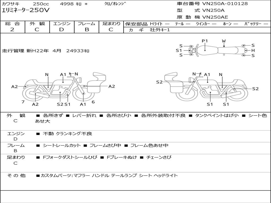 | Номер рамы / VIN | VN250A-010128 |