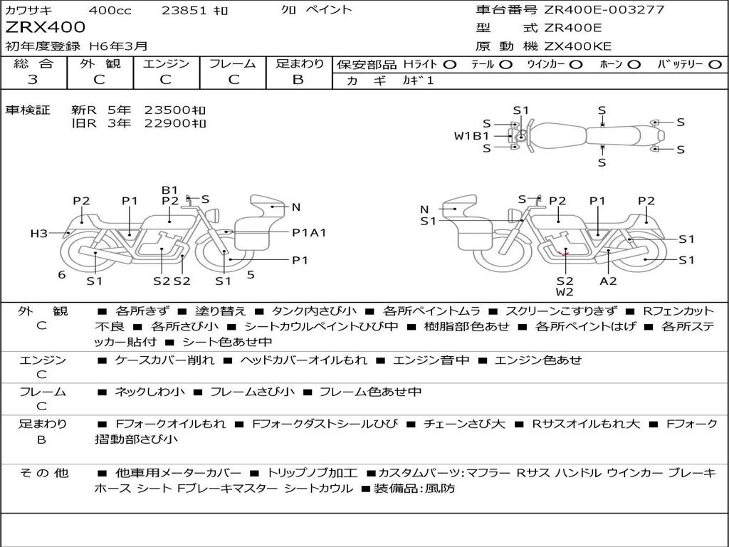 | Номер рамы / VIN | ZR400E-003277 |