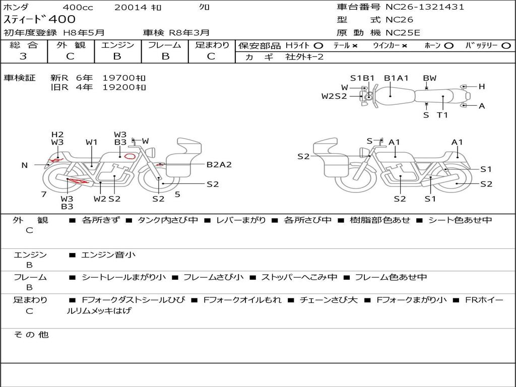 | Номер рамы / VIN | NC26-1321431 |