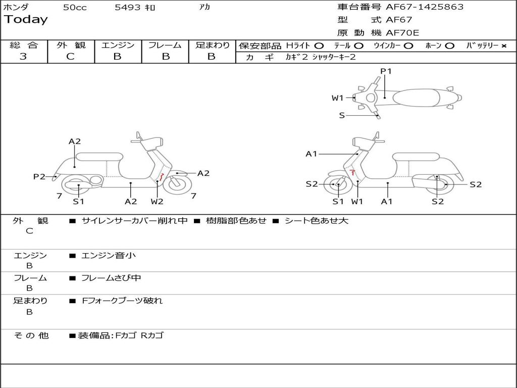| Номер рамы / VIN | AF67-1425863 |