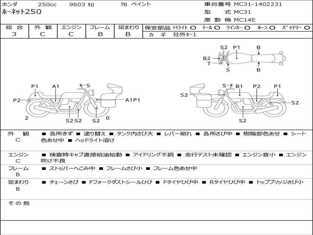 | Номер рамы / VIN | MC31-1402231 |