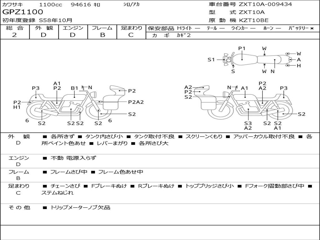| Номер рамы / VIN | ZXT10A-009434 |