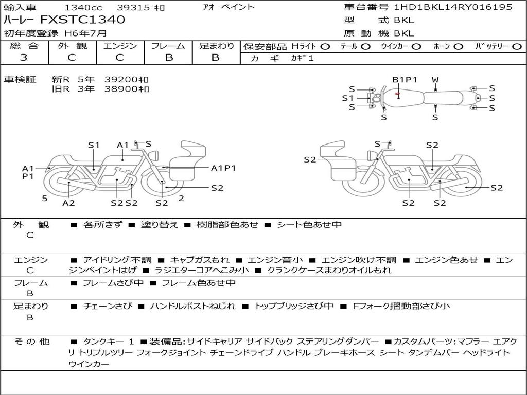| Номер рамы / VIN | 1HD1BKL14RY016195 |