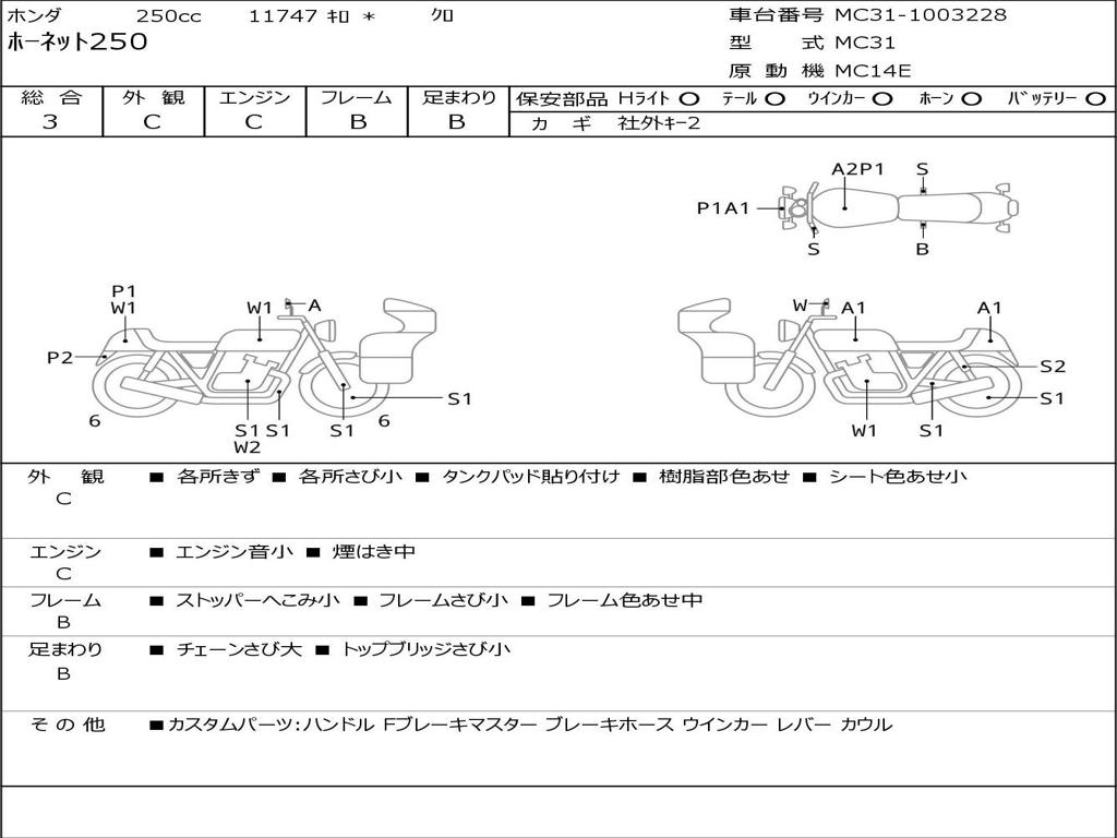 | Номер рамы / VIN | MC31-1003228 |