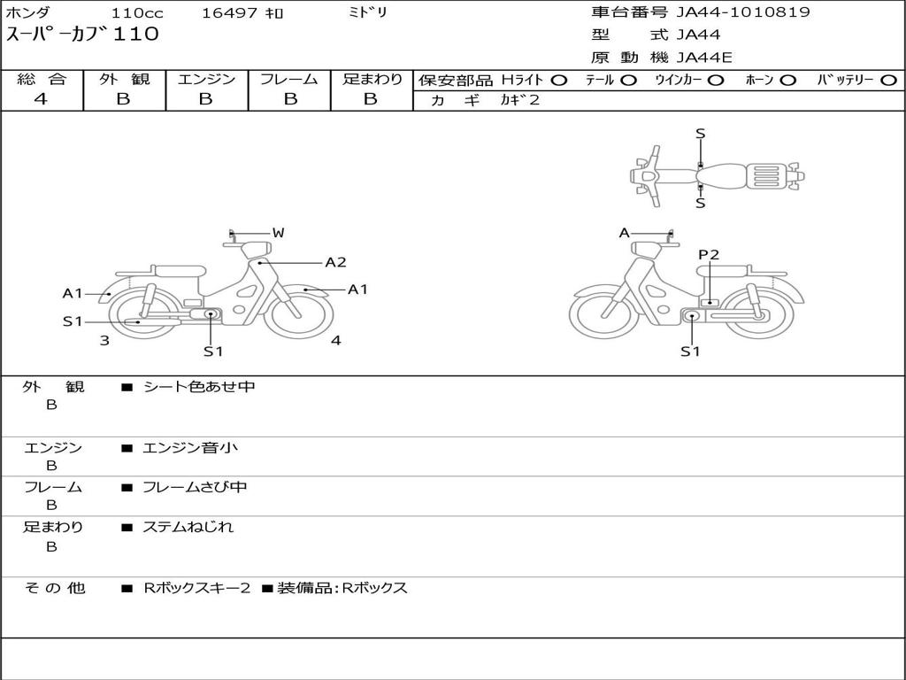 | Номер рамы / VIN | JA44-1010819 |
