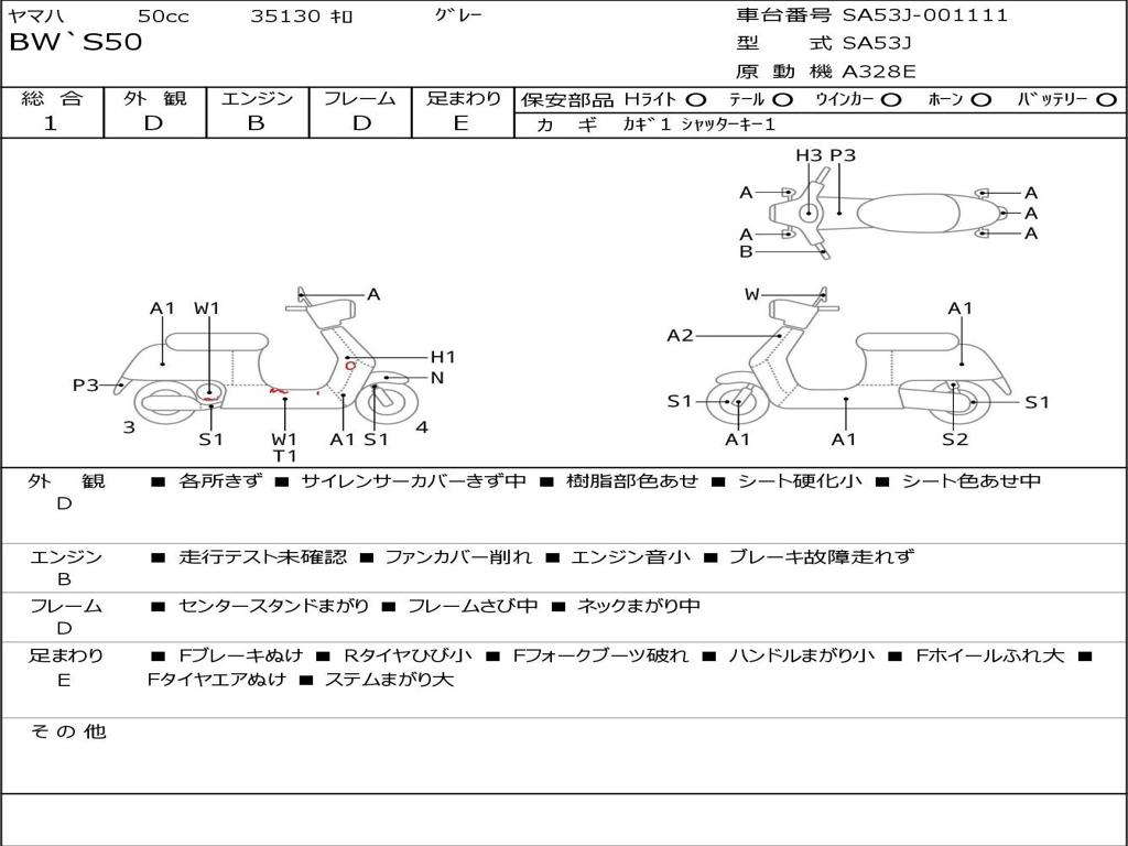 | Номер рамы / VIN | SA53J-001111 |