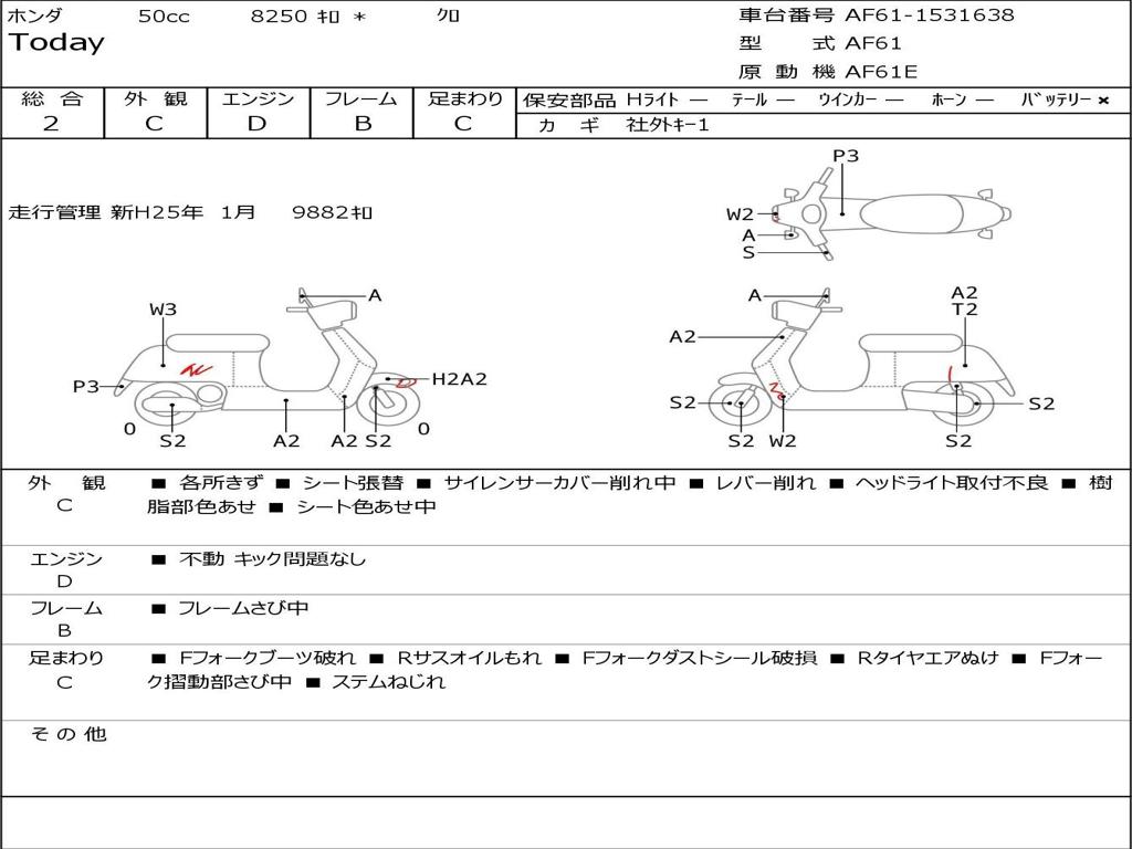 | Номер рамы / VIN | AF61-1531638 |