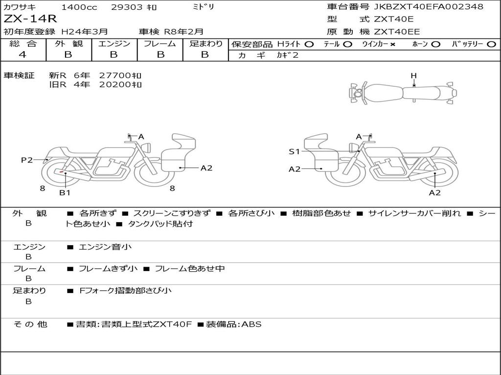 | Номер рамы / VIN | JKBZXT40EFA002348 |