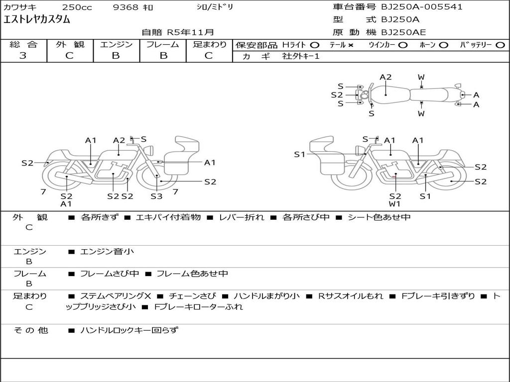 | Номер рамы / VIN | BJ250A-005541 |